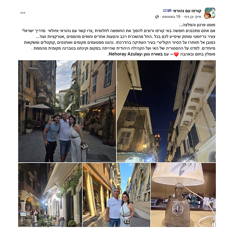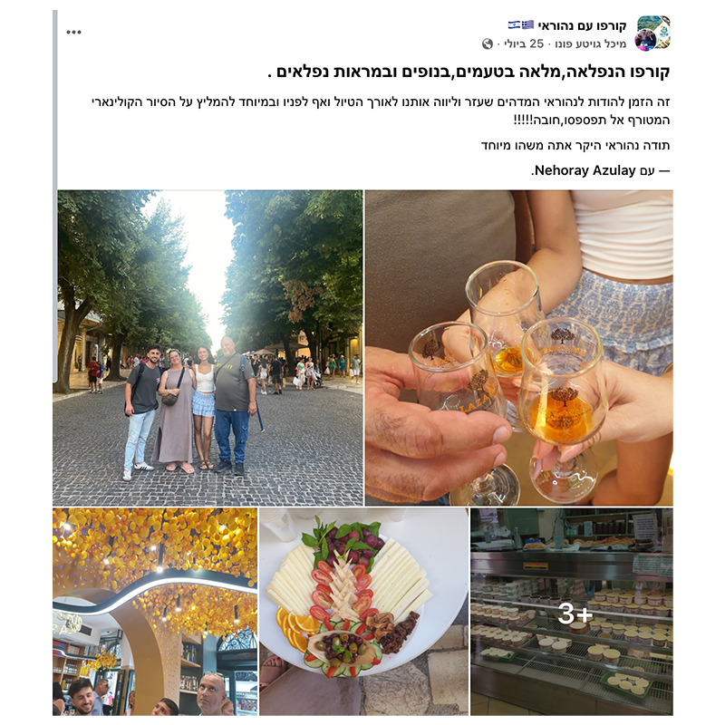 נתחיל את הסיור באווירה נעימה וקלילה, עם משקה אלכוהולי מפנק לצד שוקולדים מיוחדים שנוצרו מהתפוז הסיני – הסמל האייקוני של קורפו, כזה שמכניס אותנו מיד לווייב הנכון.