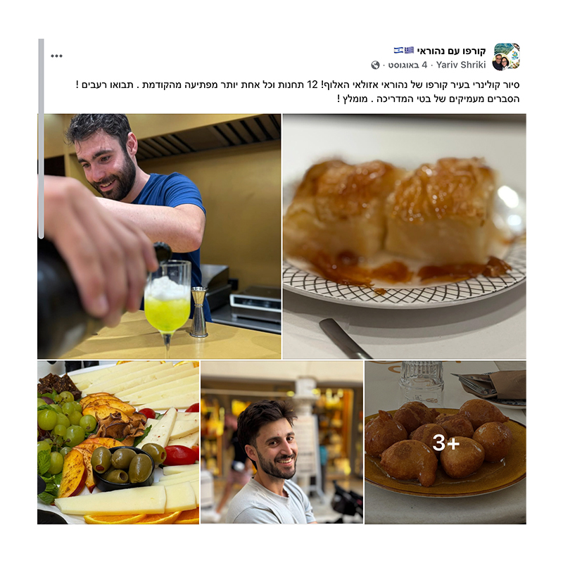 נתחיל את הסיור באווירה נעימה וקלילה, עם משקה אלכוהולי מפנק לצד שוקולדים מיוחדים שנוצרו מהתפוז הסיני – הסמל האייקוני של קורפו, כזה שמכניס אותנו מיד לווייב הנכון.