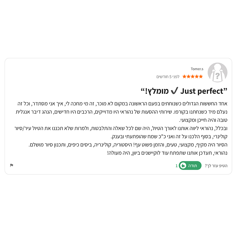 זה מה שהלקוחות שלנו מספרים על הסיורים שלנו